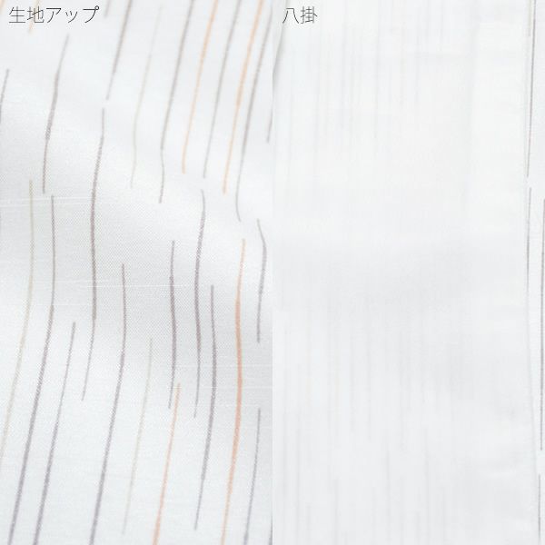 6. 紬風袷着物、京袋帯セット「白色 絣縞」M、Lサイズ 小紋 お仕立て上がり着物 プレタ 洗える着物セット 【メール便不可】