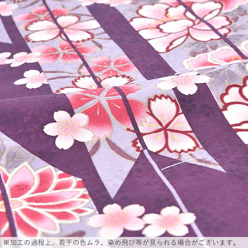 6. 【Prices down2】袷着物 単品 「赤紫 矢羽根・牡丹」 フリーサイズ 着物 小紋 洗える着物 お仕立て上がり 普段着きもの カジュアル着物 レディース ポリエステル 【メール便不可】kc★35%OFF