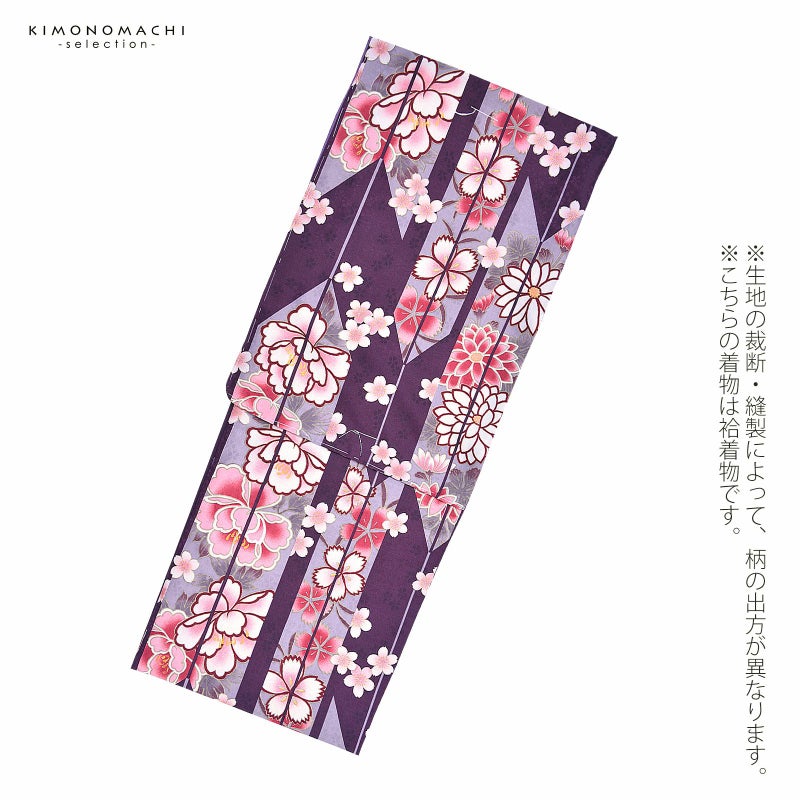 普段のお洒落着に お仕立て上がり洗える着物単品 【Prices down2】袷着物 単品 「赤紫 矢羽根・牡丹」 フリーサイズ 着物 小紋 洗える着物 お仕立て上がり 普段着きもの カジュアル着物 レディース ポリエステル 【メール便不可】kc★35%OFF
