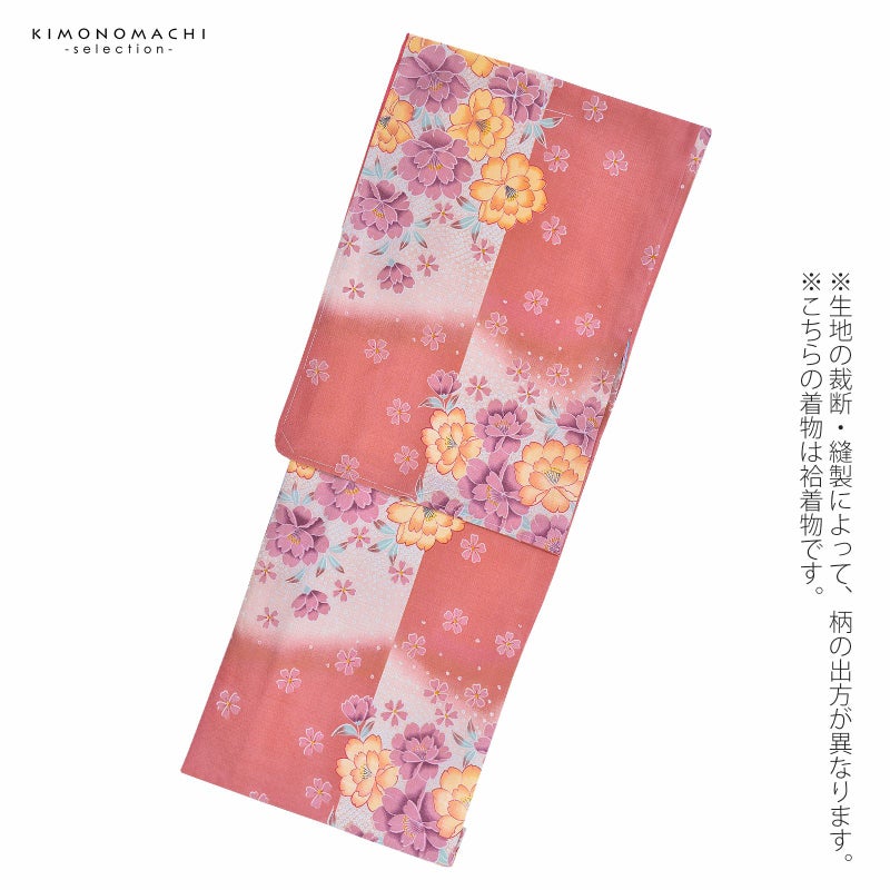 普段のお洒落着に お仕立て上がり洗える着物単品 【Prices down3】袷着物 単品 「オレンジ×浅緋色に桜」 フリーサイズ 着物 小紋 洗える着物 お仕立て上がり 普段着きもの カジュアル着物 レディース ポリエステル 【メール便不可】kc★45%OFF