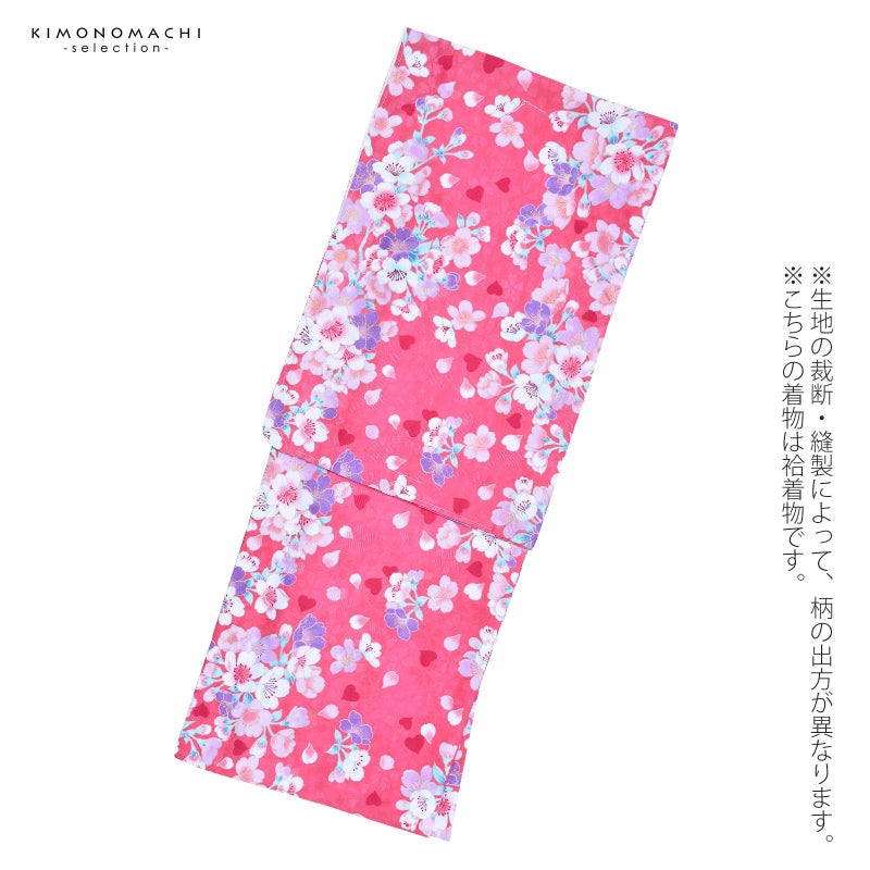 袷着物 単品 「ピンク 桜・ハート」 フリーサイズ 着物 小紋 洗える着物 お仕立て上がり 普段着きもの カジュアル着物 レディース ポリエステル 【メール便不可】