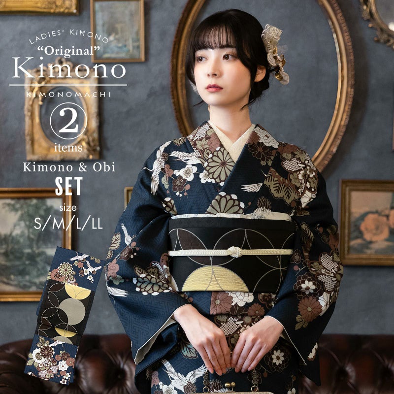 京都きもの町オリジナルブランド「KIMONOMACHI」の袷着物と京袋帯がセットになった、カジュアルな小紋の袷着物セットです。春・秋・冬にお召しいただけます。