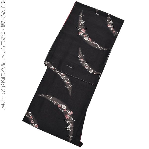 お仕立て上がり洗える着物、京袋帯のカジュアル着物セット 紬風袷着物、京袋帯セット「黒色 吹き寄せ」Lサイズ 小紋 お仕立て上がり着物 プレタ 洗える着物セット 【メール便不可】