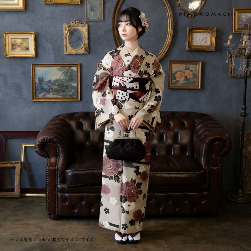 京都きもの町オリジナルブランド「KIMONOMACHI」の袷着物と京袋帯がセットになった、カジュアルな小紋の袷着物セットです。春・秋・冬にお召しいただけます。