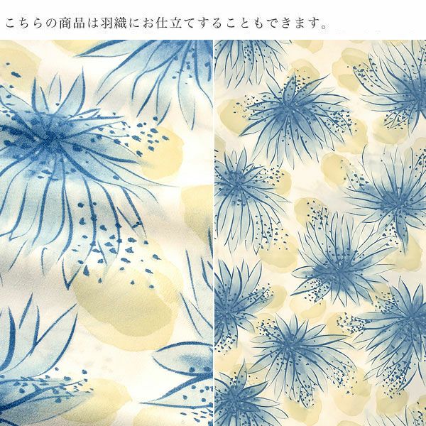 【Prices down2】セミオーダー洗える着物「ブルー 花」クイーンサイズ 小紋 ポリエステル着物 化繊着物 お仕立て代込み 【メール便不可】ss2512kck25