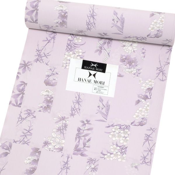 【Prices down2】洗える着物セミオーダー「白藤色 変わり縞に草花」ハナエモリ HANAE MORI 美しいキモノ 掲載柄 袷着物、単衣着物 お仕立て代込み H-104 A【メール便不可】ss2512kck25