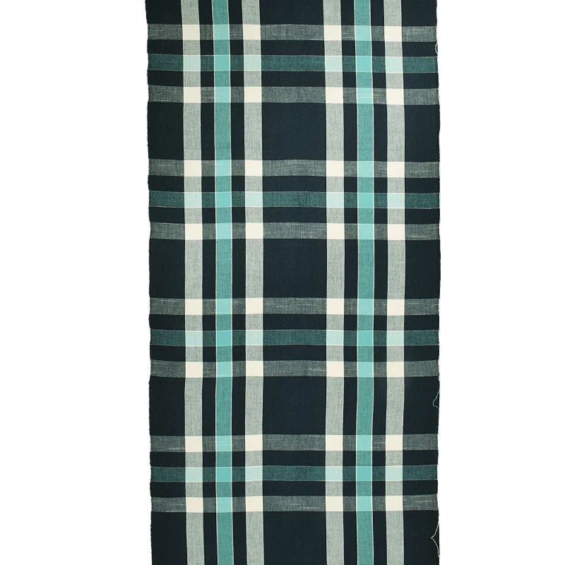 深い鉄紺に落ち着いた白、淡い浅葱色、横段に淡い色を重ねたチェック。夜風のような涼やかさのある格子です。
