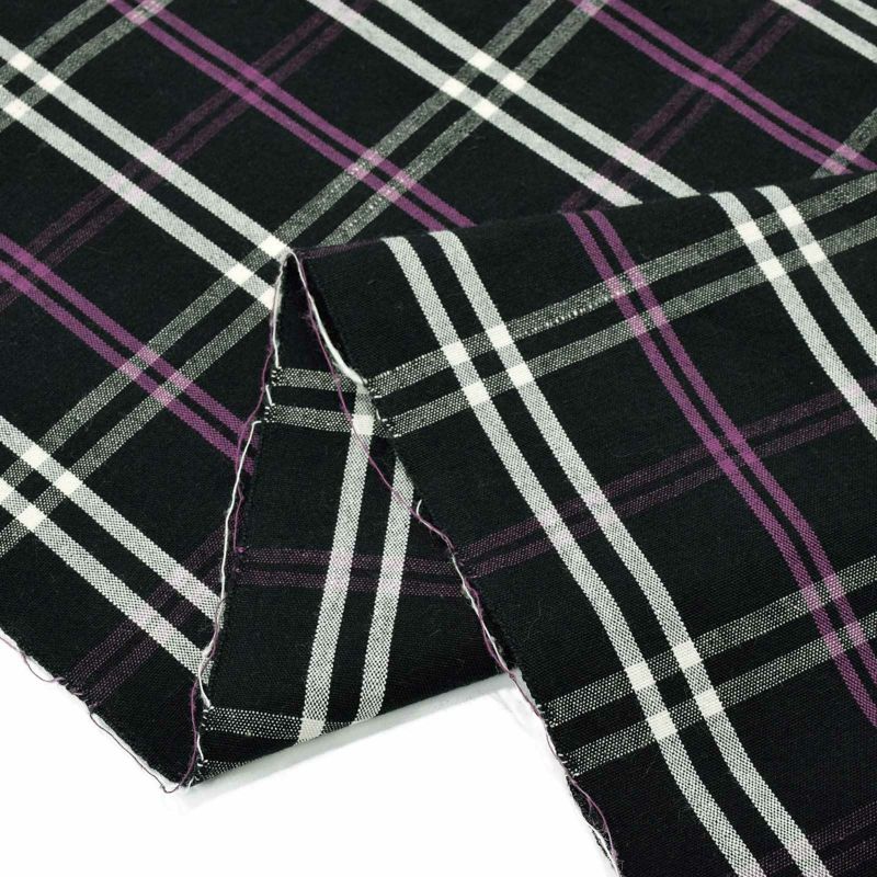 黒を基調に細い紫、白、横段に淡い色を重ねたチェック。紫蘇と名付けられたキリッとした雰囲気の格子です。