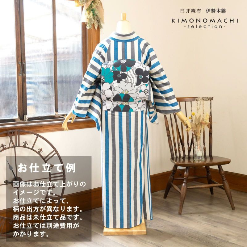 伊勢木綿 洗える着物 反物 「縦縞 白地、青×灰色(漣)」 未仕立て 木綿きもの 日本製 三重県 伝統工芸品 単衣 綿 カジュアル ストライプ 小紋 レディース キモノ kimono