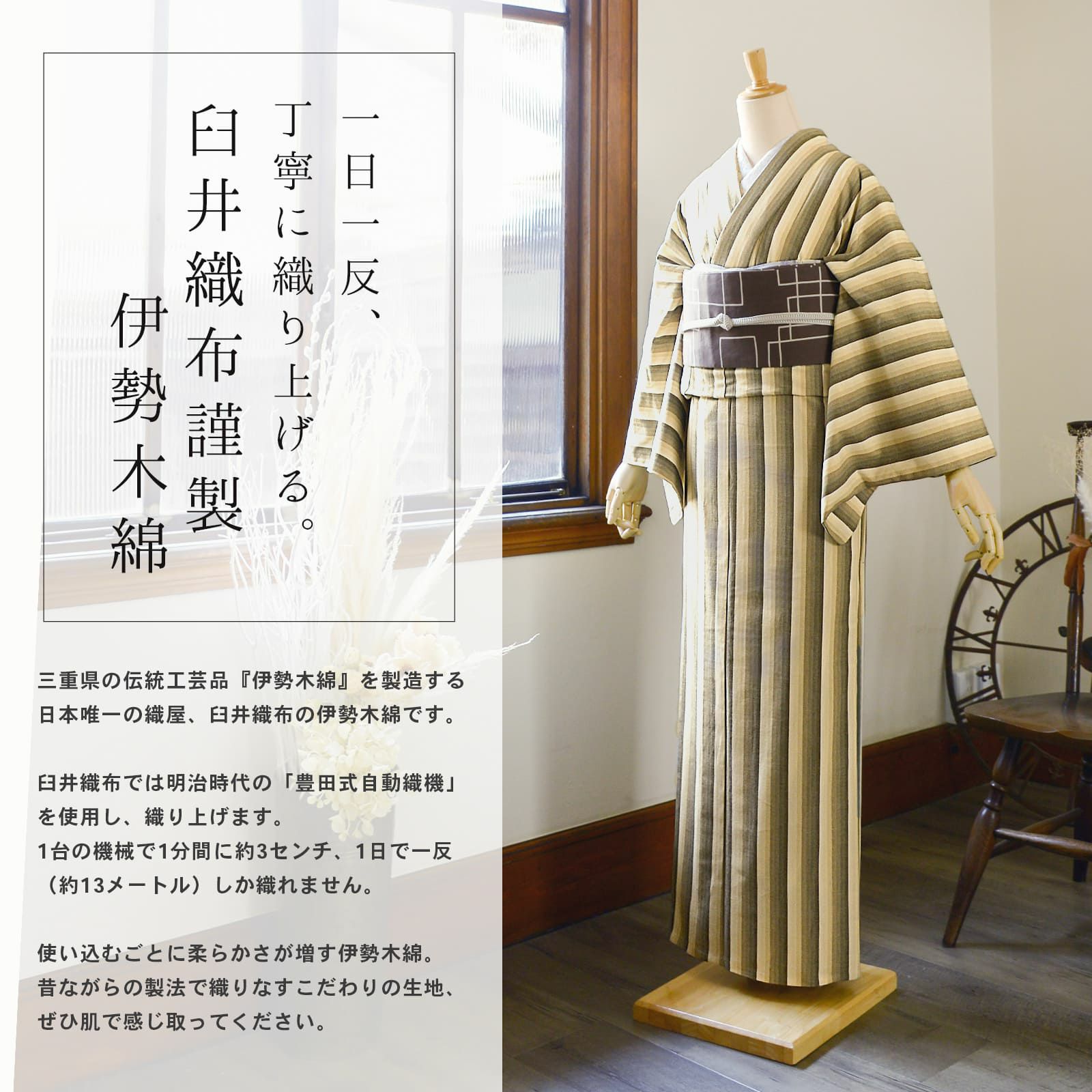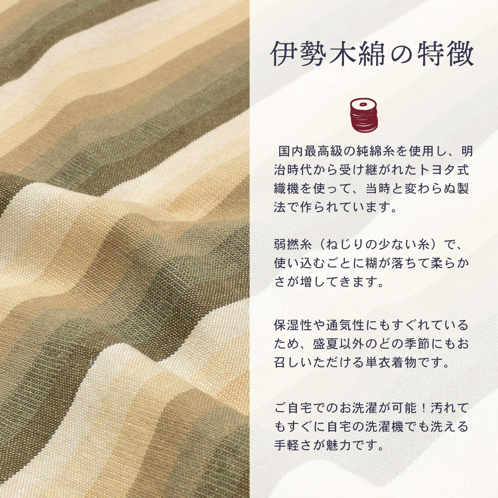 ゆっくりと時間をかけて丁寧に織り上げられた伊勢木綿の優しく素朴な風合いを、ぜひ肌で感じ取ってください