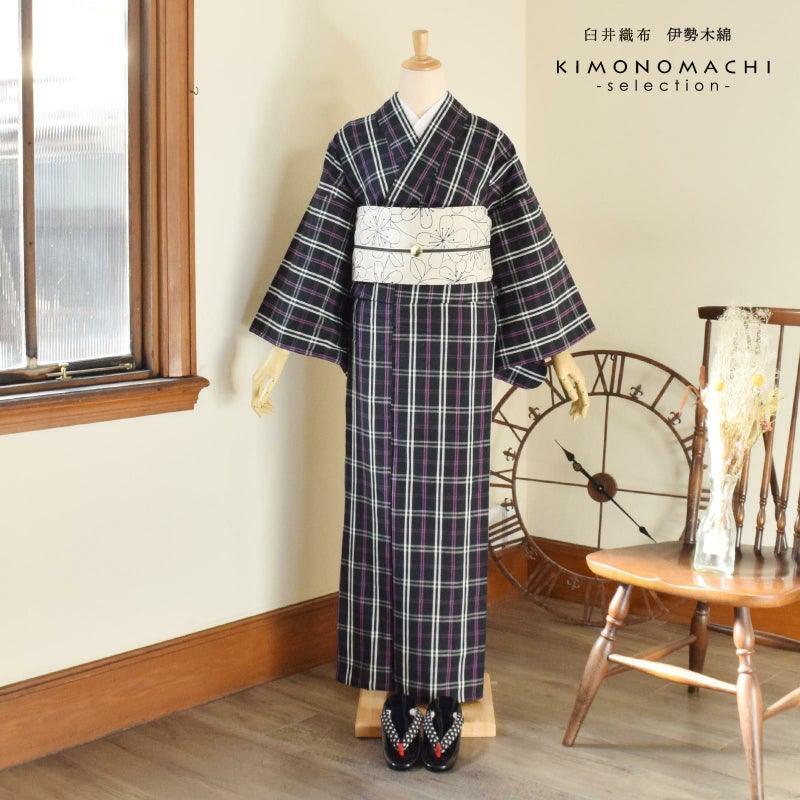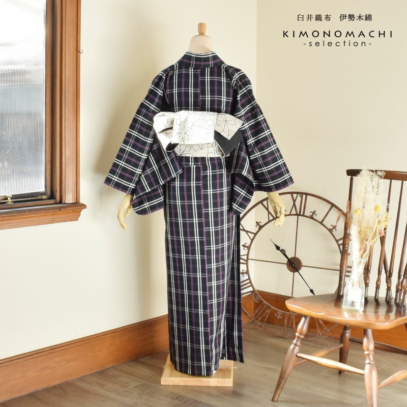 着物は単衣(ひとえ)仕立てですが、伊勢木綿は保湿・通気性にも優れているので、盛夏や真冬を除いて通年ご着用いただけます。