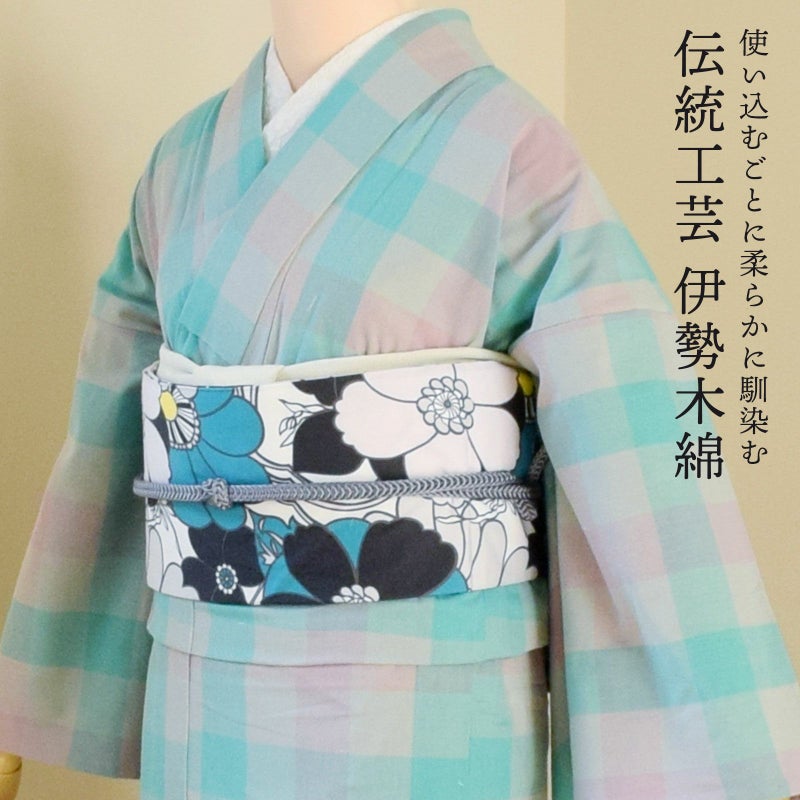 着物は単衣(ひとえ)仕立てですが、伊勢木綿は保湿・通気性にも優れているので、盛夏や真冬を除いて通年ご着用いただけます。