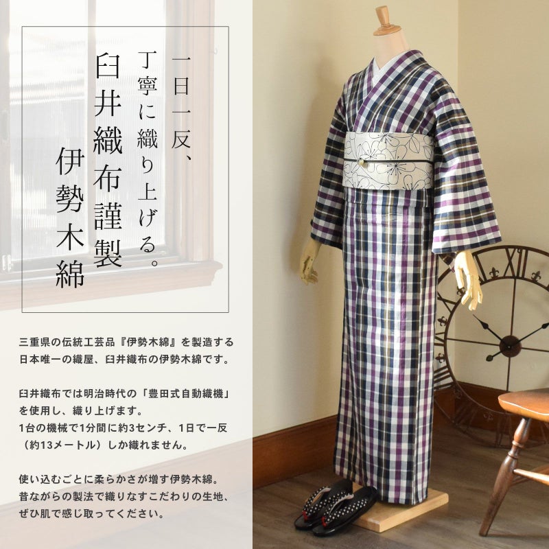 5. 伊勢木綿 洗える着物 単品 「縞・重ね格子・格子 黒地・小格子・格子 紺地・箱格子 枯芝色、浅蘇芳色、浅紫色」 お仕立て上がり 木綿きもの 日本製 三重県 伝統工芸品 単衣 綿 カジュアル チェック 小紋 レディース キモノ kimono 【メール便不可】