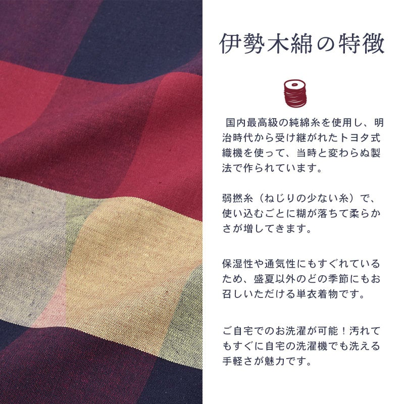 伊勢木綿 洗える着物 単品 「縞・重ね格子・格子 黒地・小格子・格子 紺地・箱格子 枯芝色、浅蘇芳色、浅紫色」 お仕立て上がり 木綿きもの 日本製 三重県 伝統工芸品 単衣 綿 カジュアル チェック 小紋 レディース キモノ kimono 【メール便不可】