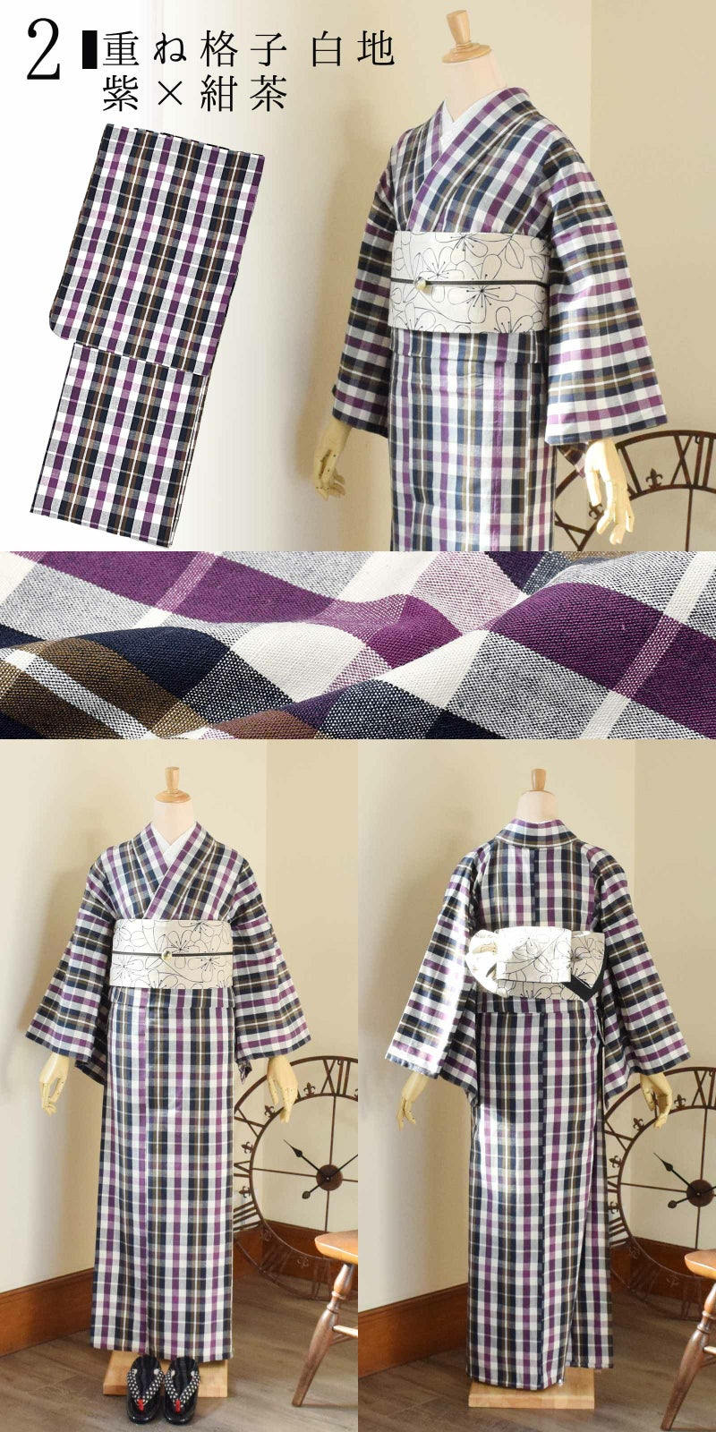• 2重ね格子 白地、紫×紺茶 在庫切れ