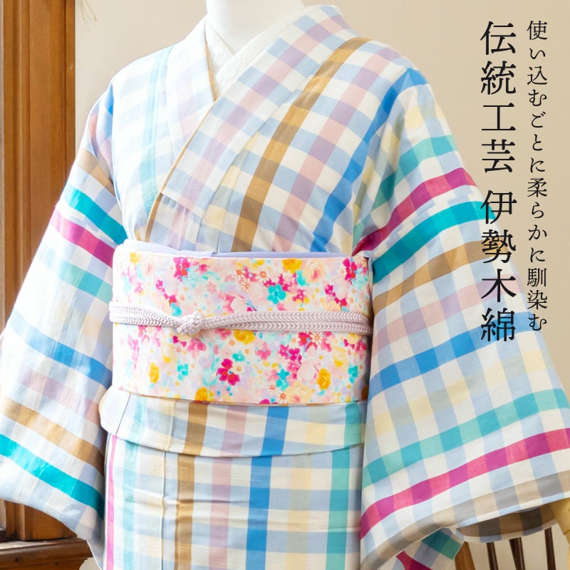 着物は単衣(ひとえ)仕立てですが、伊勢木綿は保湿・通気性にも優れているので、盛夏や真冬を除いて通年ご着用いただけます。
