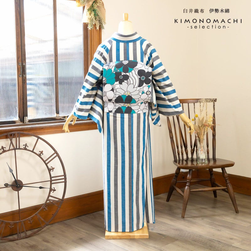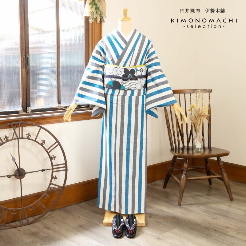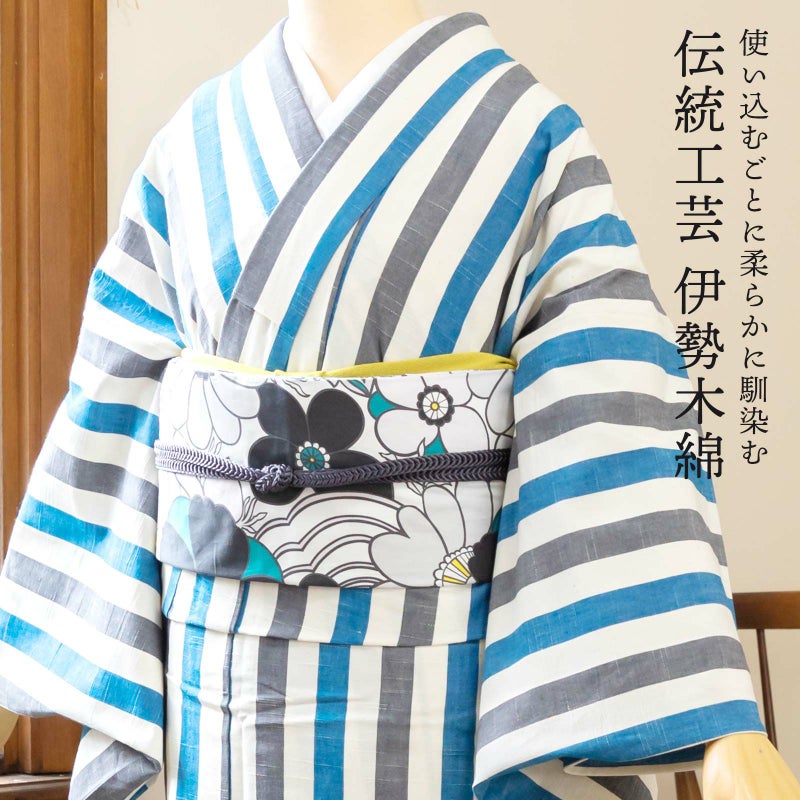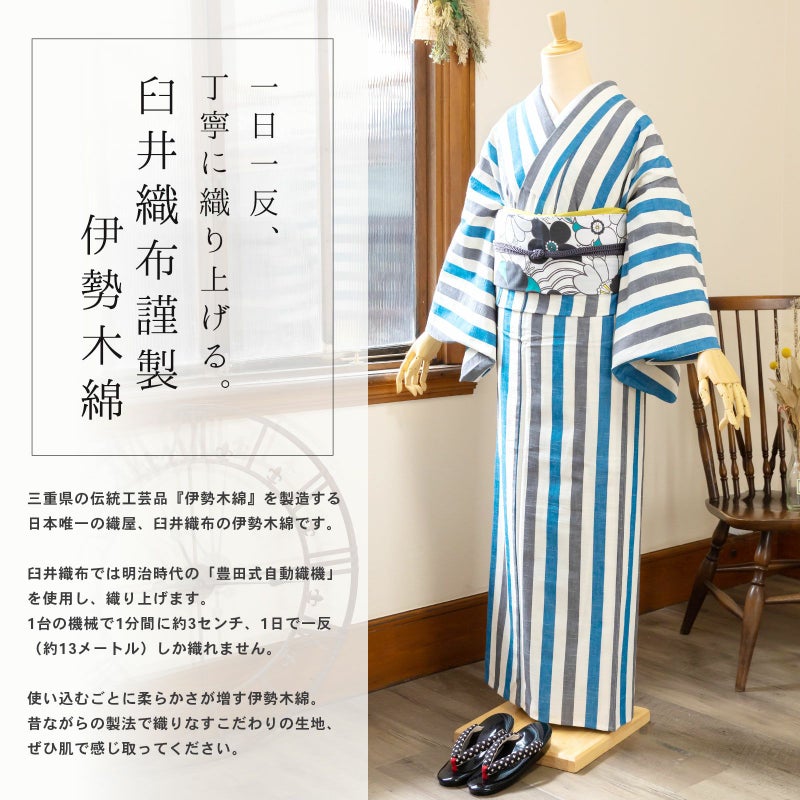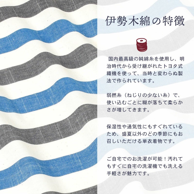 着物は単衣(ひとえ)仕立てですが、伊勢木綿は保湿・通気性にも優れているので、盛夏や真冬を除いて通年ご着用いただけます。