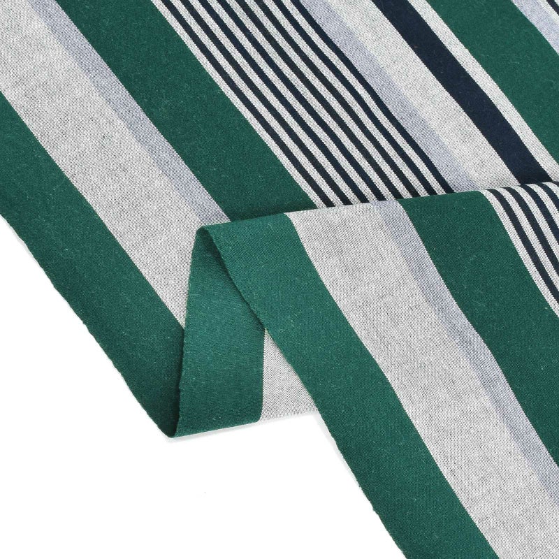深緑色に灰色の縞、紺の細縞、挿し色として浅い薄紫色が配置されたデザイン。落ち着いた格好いい配色のストライプです。