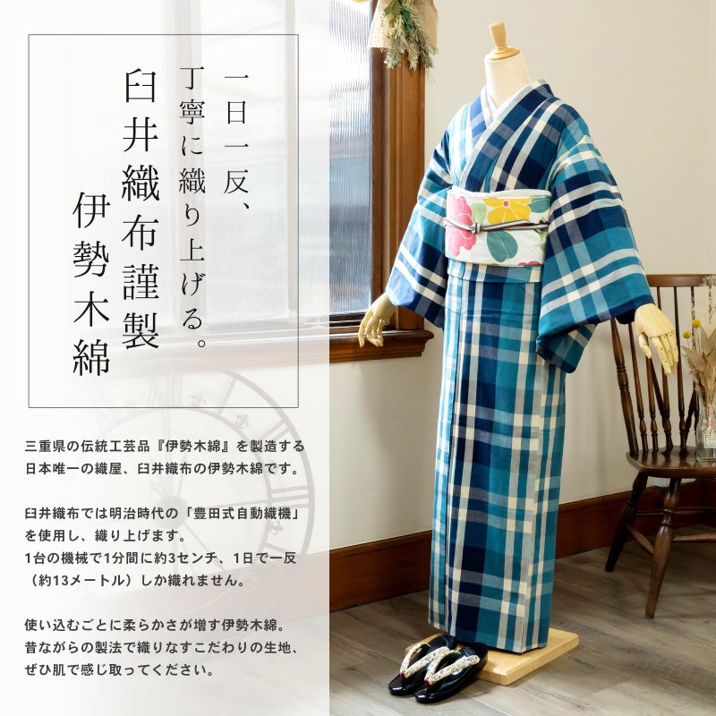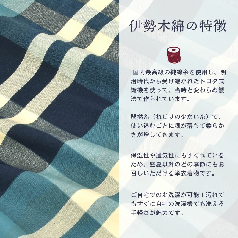 着物は単衣(ひとえ)仕立てですが、伊勢木綿は保湿・通気性にも優れているので、盛夏や真冬を除いて通年ご着用いただけます。