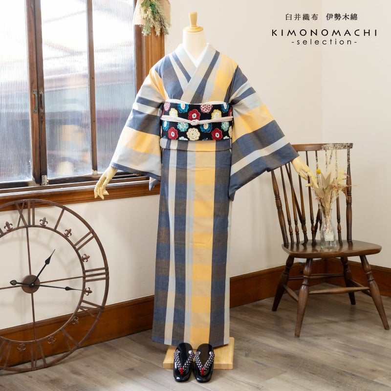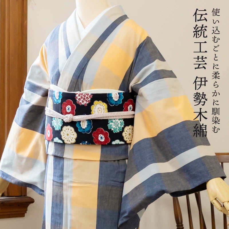 着物は単衣(ひとえ)仕立てですが、伊勢木綿は保湿・通気性にも優れているので、盛夏や真冬を除いて通年ご着用いただけます。