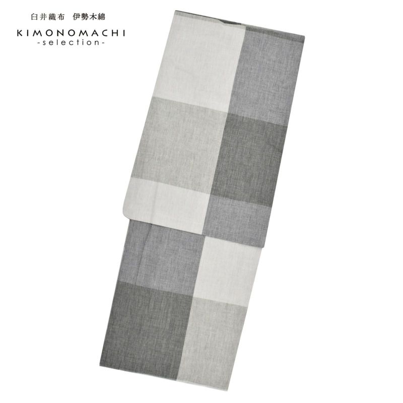 伊勢木綿 洗える着物 単品 「貝割格子 グレー(冬景色)」 お仕立て上がり 木綿きもの 日本製 三重県 伝統工芸品 単衣 綿 カジュアル チェック 小紋 レディース キモノ kimono