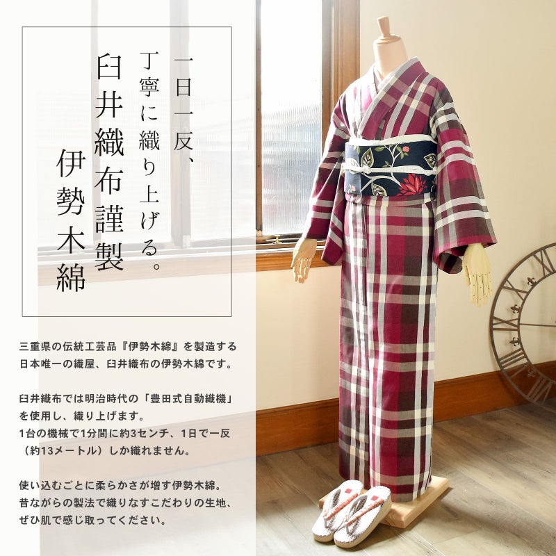 着物は単衣(ひとえ)仕立てですが、伊勢木綿は保湿・通気性にも優れているので、盛夏や真冬を除いて通年ご着用いただけます。