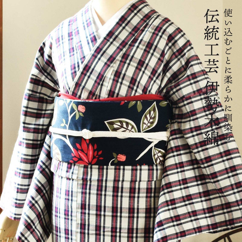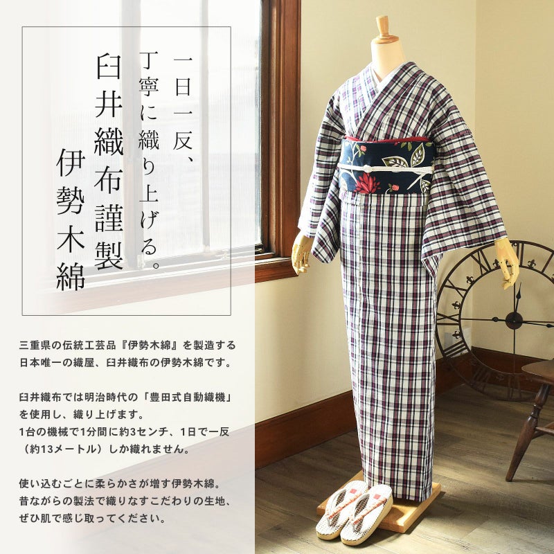 着物は単衣(ひとえ)仕立てですが、伊勢木綿は保湿・通気性にも優れているので、盛夏や真冬を除いて通年ご着用いただけます。