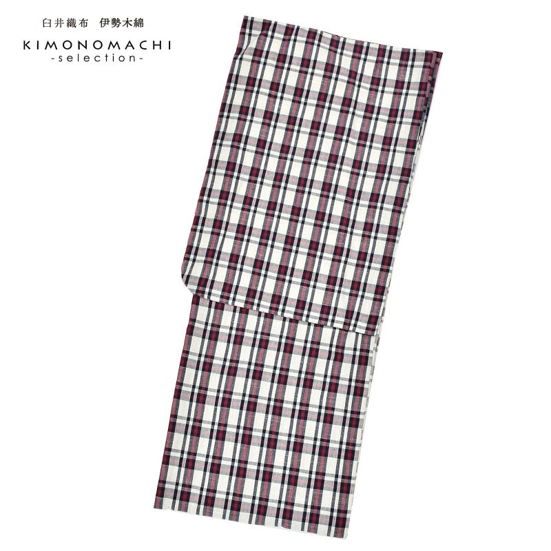 やわらかく、どこかぬくもりが感じられる「伊勢木綿」のお仕立て上がり単衣着物 伊勢木綿 洗える着物 単品「重ね格子 白地、紺×紅色」お仕立て上がり 木綿きもの 日本製 三重県 伝統工芸品 単衣 綿 カジュアル チェック 小紋 レディース キモノ kimono【メール便不可】