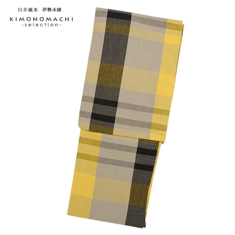 やわらかく、どこかぬくもりが感じられる「伊勢木綿」のお仕立て上がり単衣着物 伊勢木綿 洗える着物 単品「格子淡黄×グレー×墨色」お仕立て上がり 木綿きもの 日本製 三重県 伝統工芸品 単衣 綿 カジュアル チェック 小紋 レディース キモノ kimono【メール便不可】