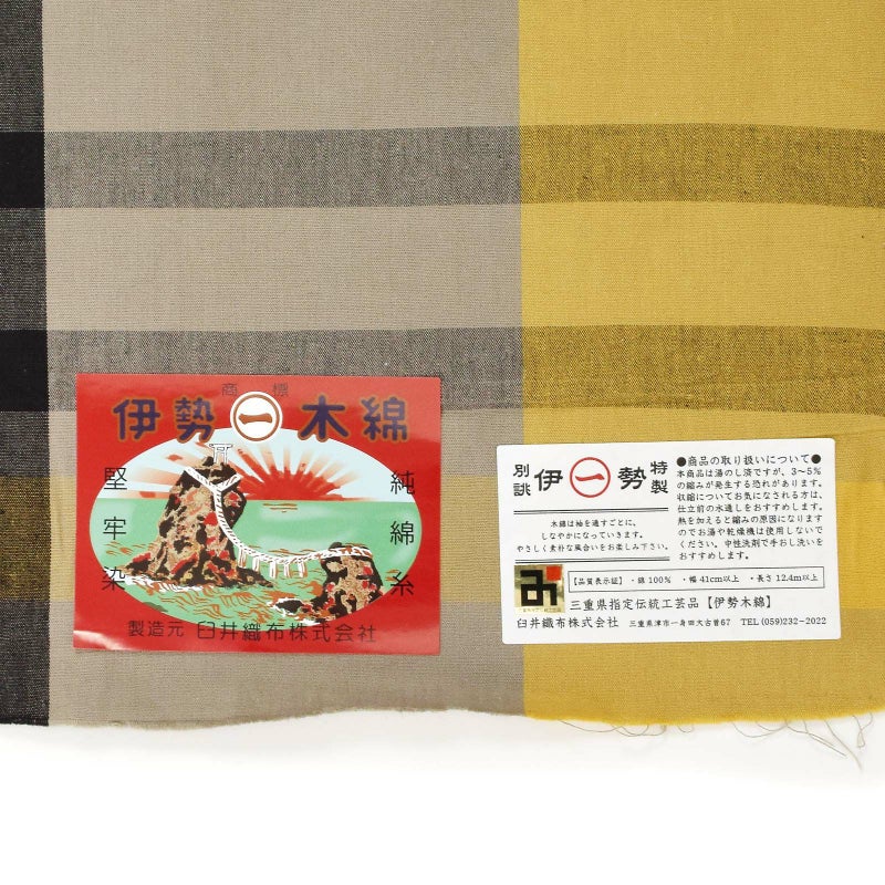 5. 伊勢木綿 洗える着物 単品「格子淡黄×グレー×墨色」お仕立て上がり 木綿きもの 日本製 三重県 伝統工芸品 単衣 綿 カジュアル チェック 小紋 レディース キモノ kimono【メール便不可】