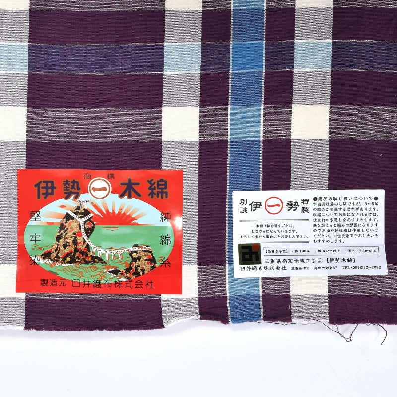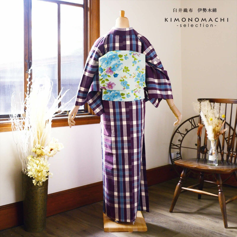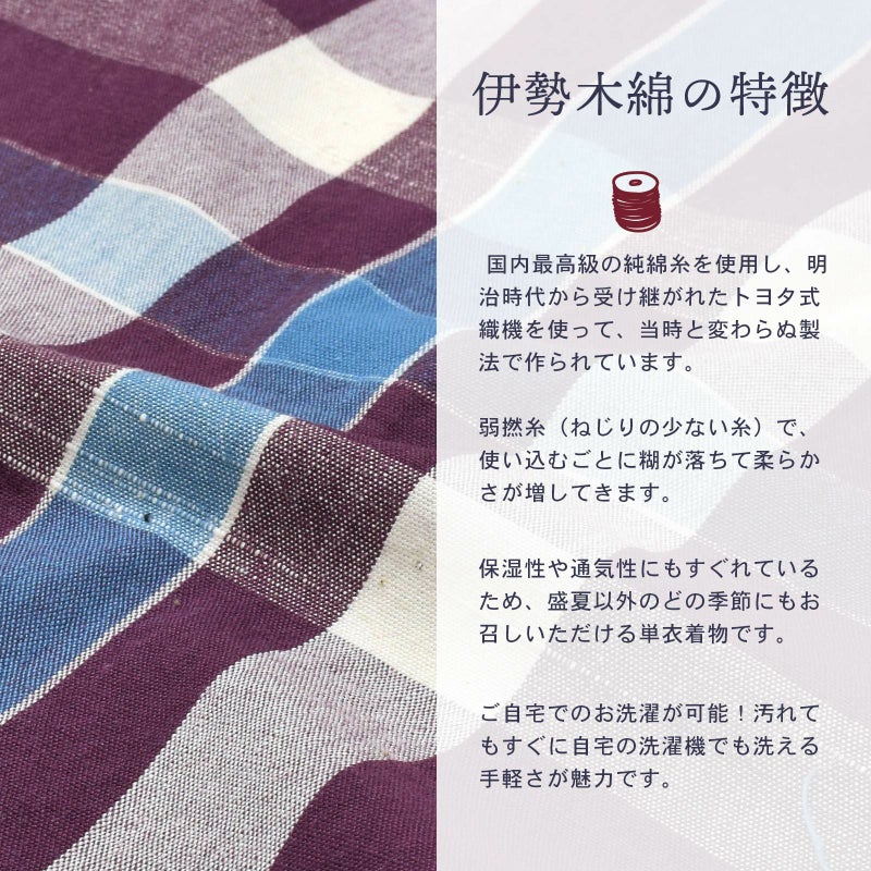 5. 伊勢木綿 洗える着物 単品「格子 古代紫、白×水色」お仕立て上がり 木綿きもの 日本製 三重県 伝統工芸品 単衣 綿 カジュアル チェック 小紋 レディース キモノ kimono【メール便不可】