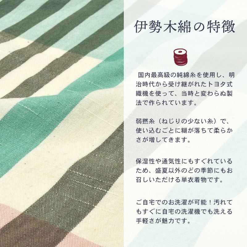 伊勢木綿 洗える着物 単品「格子 白地 グレー×ミント×薄紅」お仕立て上がり 木綿きもの 日本製 三重県 伝統工芸品 単衣 綿 カジュアル チェック 小紋 レディース キモノ kimono