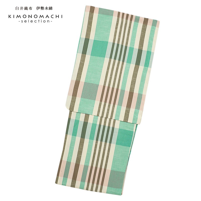 5. 伊勢木綿 洗える着物 単品「格子 白地 グレー×ミント×薄紅」お仕立て上がり 木綿きもの 日本製 三重県 伝統工芸品 単衣 綿 カジュアル チェック 小紋 レディース キモノ kimono【メール便不可】
