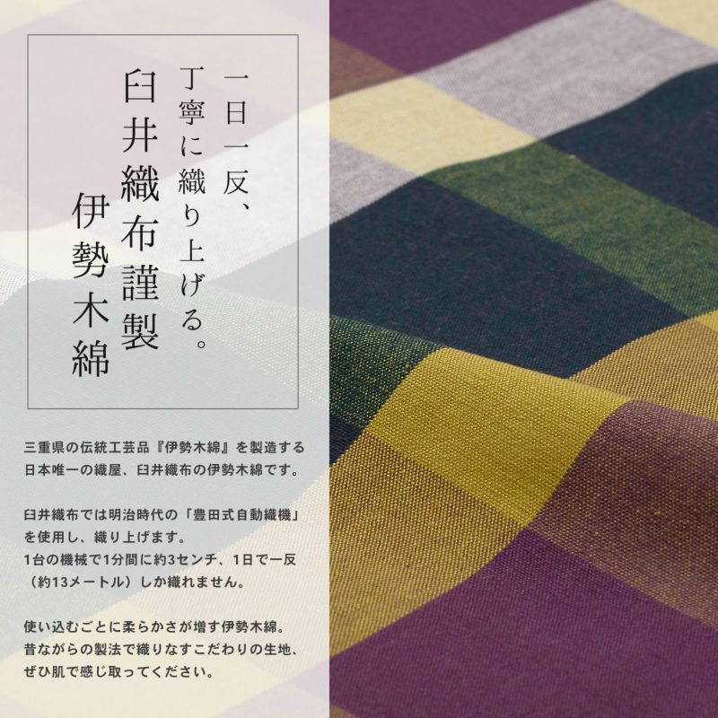 ゆっくりと時間をかけて丁寧に織り上げられた伊勢木綿の優しく素朴な風合いを、ぜひ肌で感じ取ってください