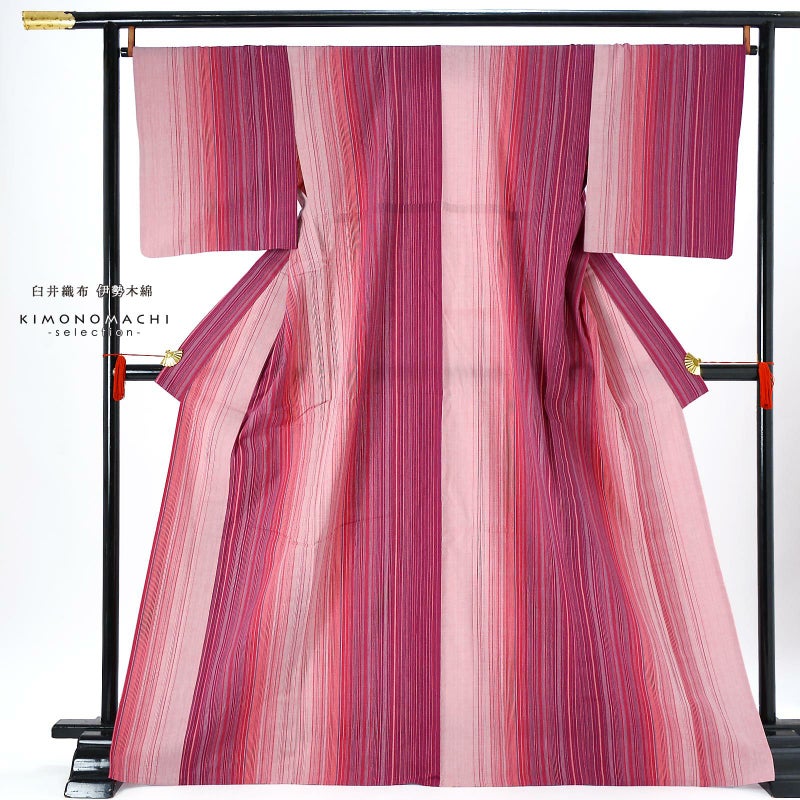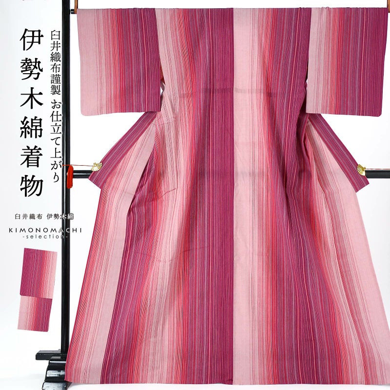 やわらかく、どこかぬくもりが感じられる「伊勢木綿」のお仕立て上がり単衣着物 伊勢木綿 洗える着物 単品「滝縞 赤紫×ピンク」お仕立て上がり 木綿きもの 日本製 三重県 伝統工芸品 単衣 綿 カジュアル チェック 小紋 レディース キモノ kimono【メール便不可】