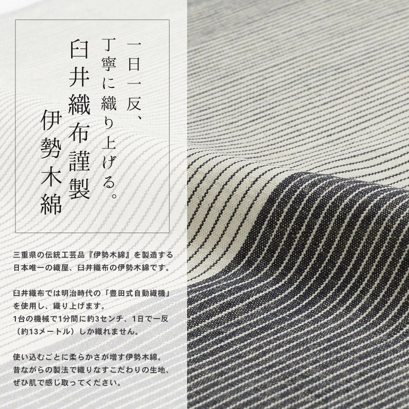 ゆっくりと時間をかけて丁寧に織り上げられた伊勢木綿の優しく素朴な風合いを、ぜひ肌で感じ取ってください