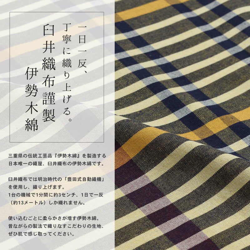 ゆっくりと時間をかけて丁寧に織り上げられた伊勢木綿の優しく素朴な風合いを、ぜひ肌で感じ取ってください