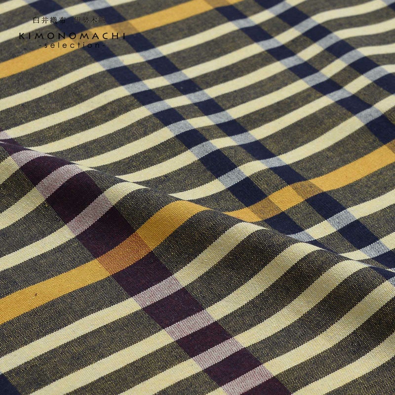 5. 伊勢木綿 洗える着物 単品「長格子 青朽葉地 黄色×紺×紫」お仕立て上がり 木綿きもの 日本製 三重県 伝統工芸品 単衣 綿 カジュアル チェック 小紋 レディース キモノ kimono【メール便不可】