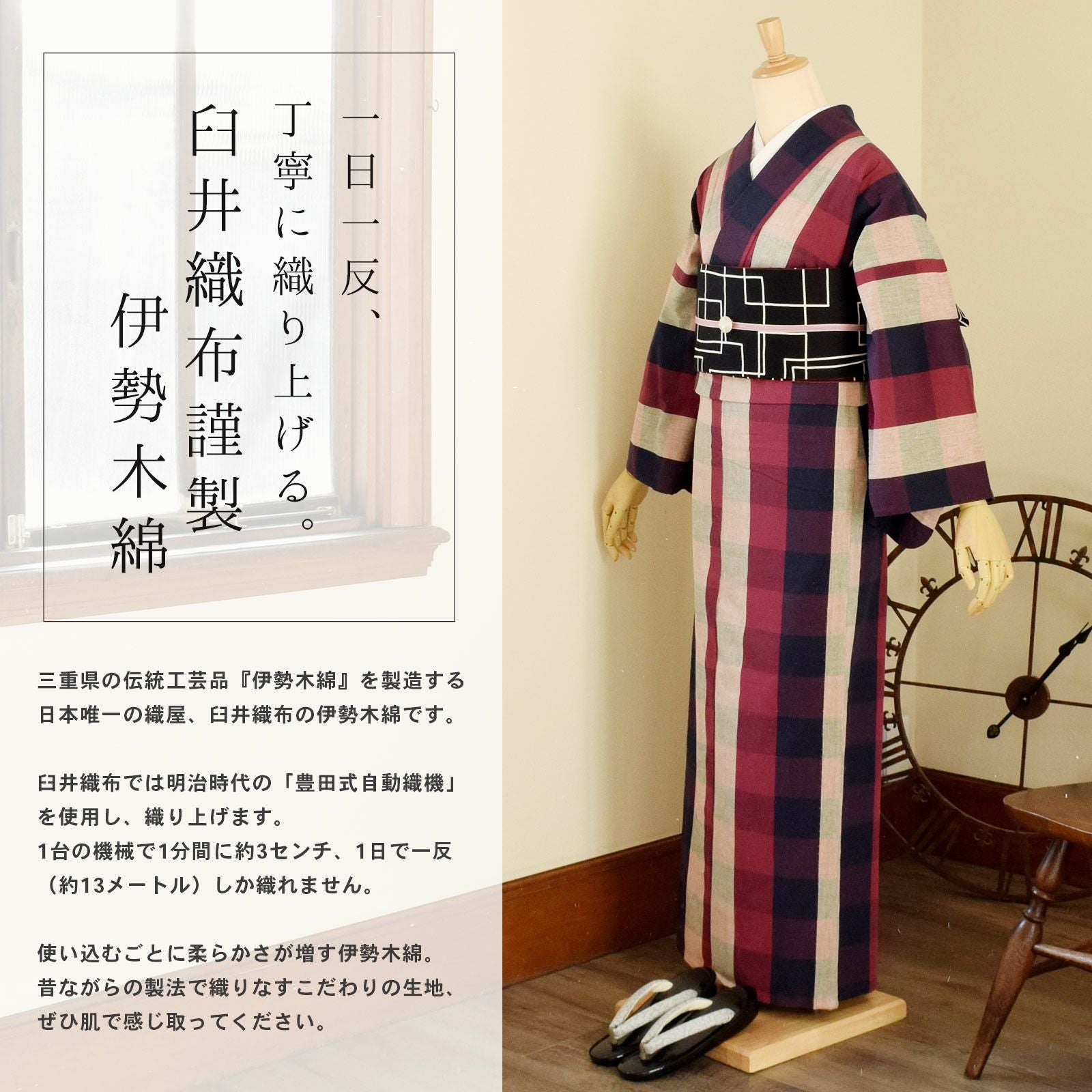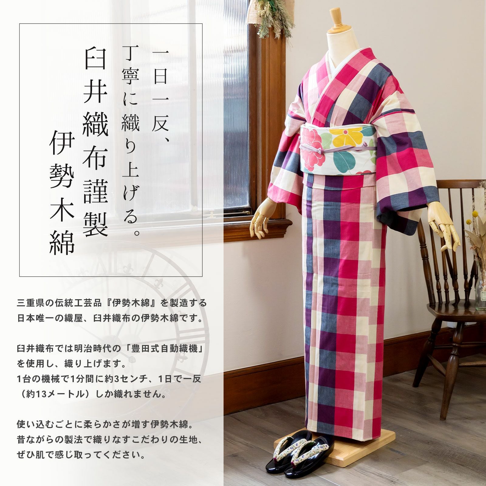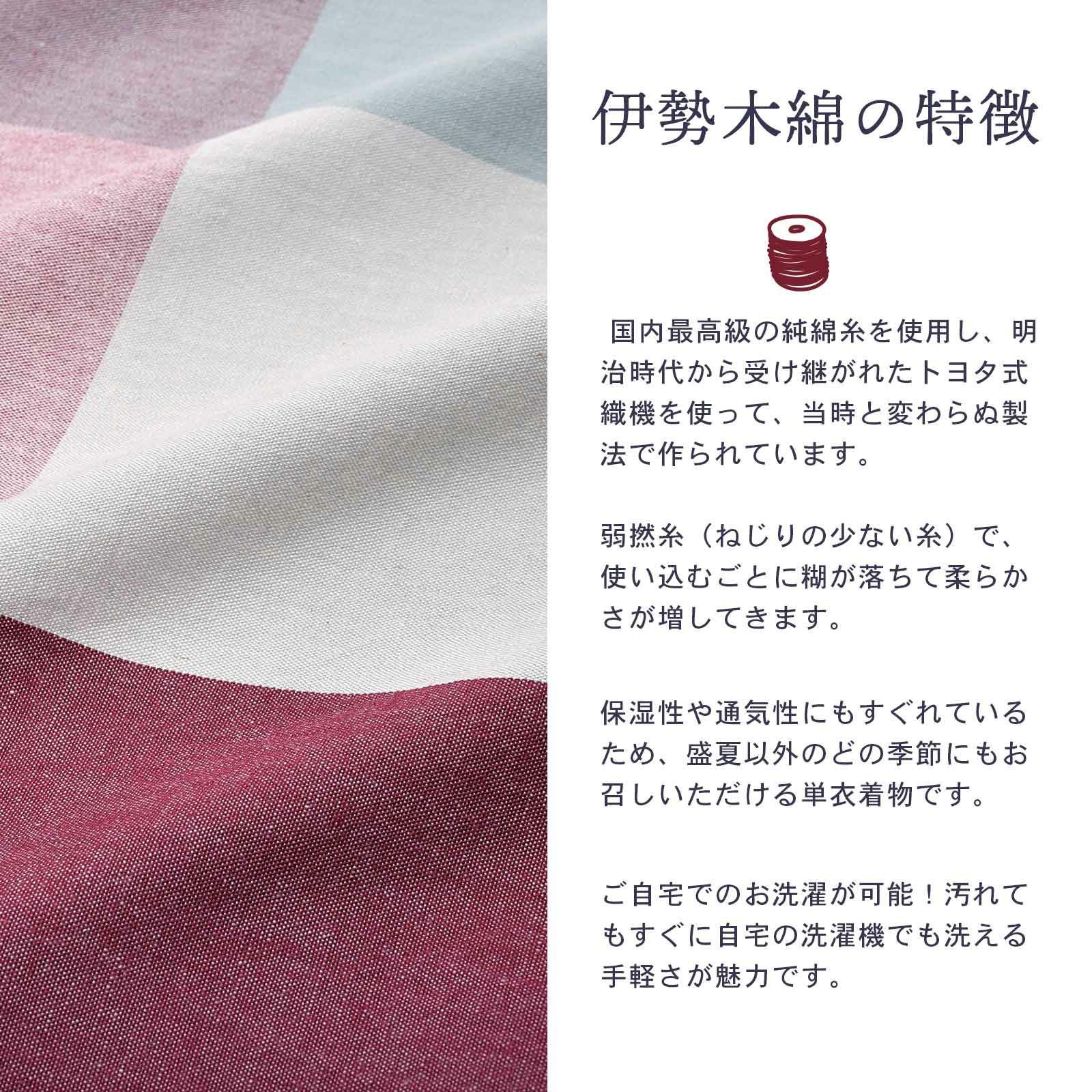 他の画像を見る 送料無料 やわらかく、どこかぬくもりが感じられる「伊勢木綿」のお仕立て上がり単衣着物 伊勢木綿 洗える着物 単品 「箱格子 紫紺×赤紫色(つつじ)」 お仕立て上がり 木綿きもの 日本製 三重県 伝統工芸品 単衣 綿 カジュアル チェック 小紋 レディース キモノ kimono 【メール便不可】 きもの町価格 ¥ 45,100 税込 在庫切れ 詳細を見る お気に入りに登録する