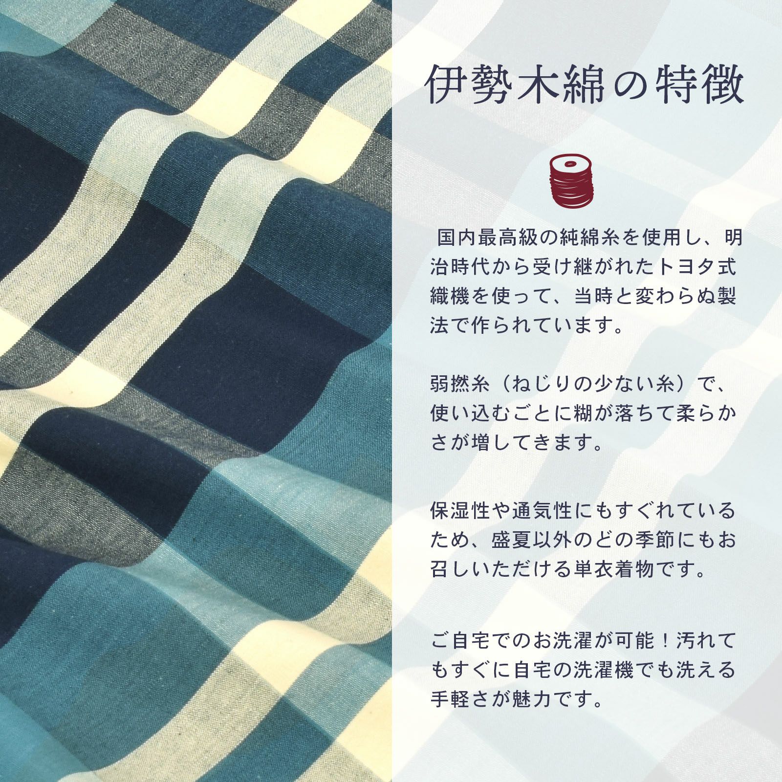他の画像を見る 送料無料 やわらかく、どこかぬくもりが感じられる「伊勢木綿」のお仕立て上がり単衣着物 伊勢木綿 洗える着物 単品 「三升格子 紺地、白×浅葱色」 お仕立て上がり 木綿きもの 日本製 三重県 伝統工芸品 単衣 綿 カジュアル チェック 小紋 レディース キモノ kimono 【メール便不可】 きもの町価格 ¥ 45,100 税込 在庫切れ 詳細を見る お気に入りに登録する