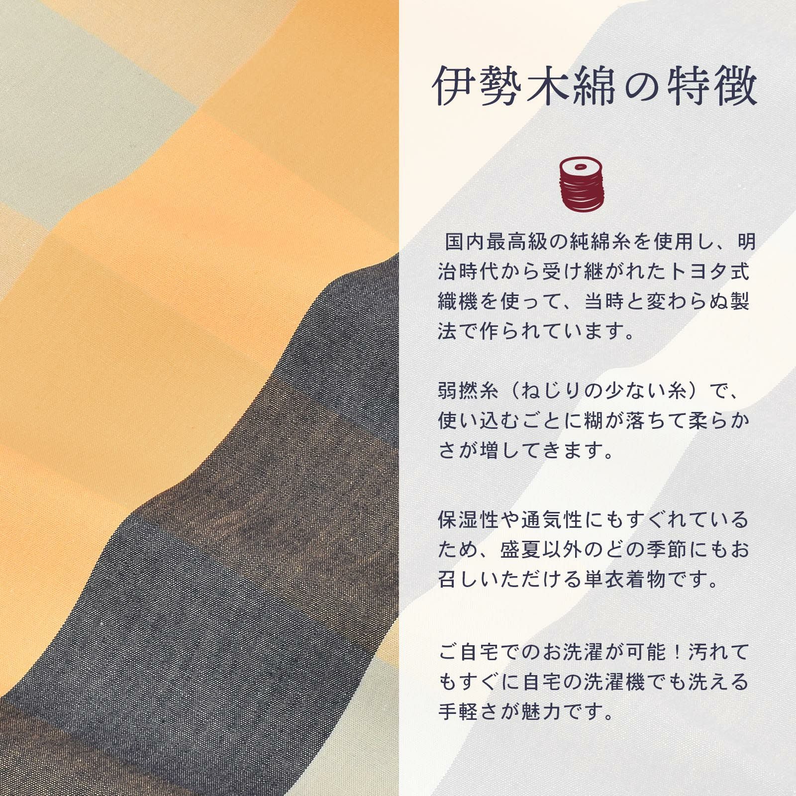 他の画像を見る 送料無料 やわらかく、どこかぬくもりが感じられる「伊勢木綿」のお仕立て上がり単衣着物 伊勢木綿 洗える着物 単品 「三升格子 利休色×黄色(黄金畑)」 お仕立て上がり 木綿きもの 日本製 三重県 伝統工芸品 単衣 綿 カジュアル チェック 小紋 レディース キモノ kimono 【メール便不可】 きもの町価格 ¥ 45,100 税込 在庫切れ 詳細を見る お気に入りに登録する