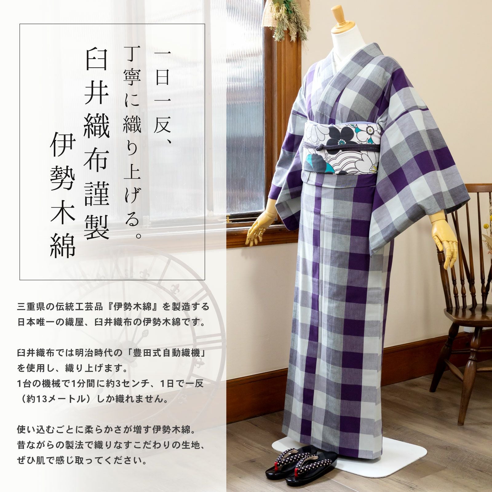 他の画像を見る 送料無料 やわらかく、どこかぬくもりが感じられる「伊勢木綿」のお仕立て上がり単衣着物 伊勢木綿 洗える着物 単品 「箱格子 浅紫色×白藍(夢物語)」 お仕立て上がり 木綿きもの 日本製 三重県 伝統工芸品 単衣 綿 カジュアル チェック 小紋 レディース キモノ kimono 【メール便不可】 きもの町価格 ¥ 45,100 税込 在庫切れ 詳細を見る お気に入りに登録する