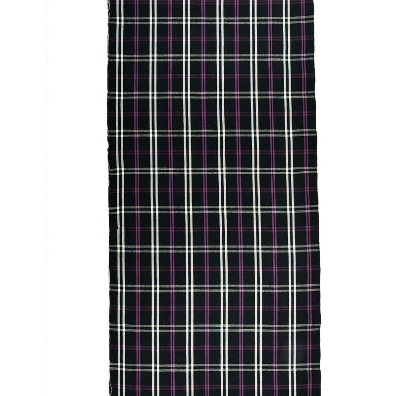 黒を基調に細い紫、白、横段に淡い色を重ねたチェック。紫蘇と名付けられたキリッとした雰囲気の格子です。