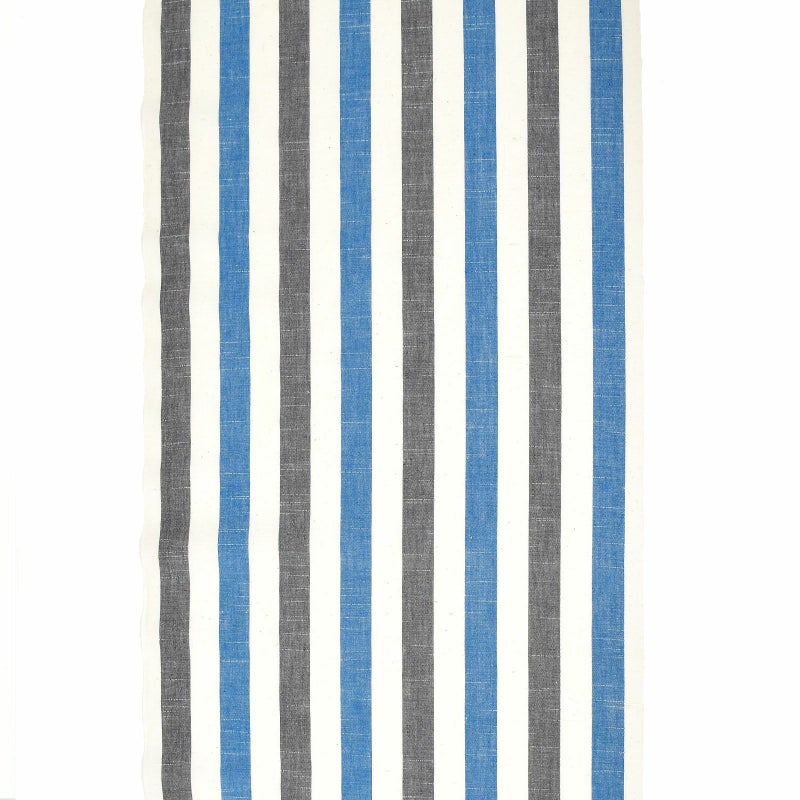 オフホワイトの地に、浅い青、灰色の約2.5cm強の太さの縦縞が等間隔に配置されたデザイン。涼やかな水辺を思わせるストライプです。