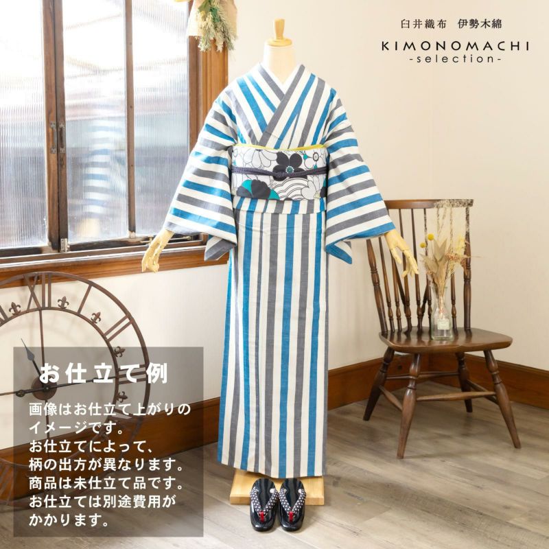 伊勢木綿 洗える着物 反物 「縦縞 白地、青×灰色(漣)」 未仕立て 木綿きもの 日本製 三重県 伝統工芸品 単衣 綿 カジュアル ストライプ 小紋 レディース キモノ kimono