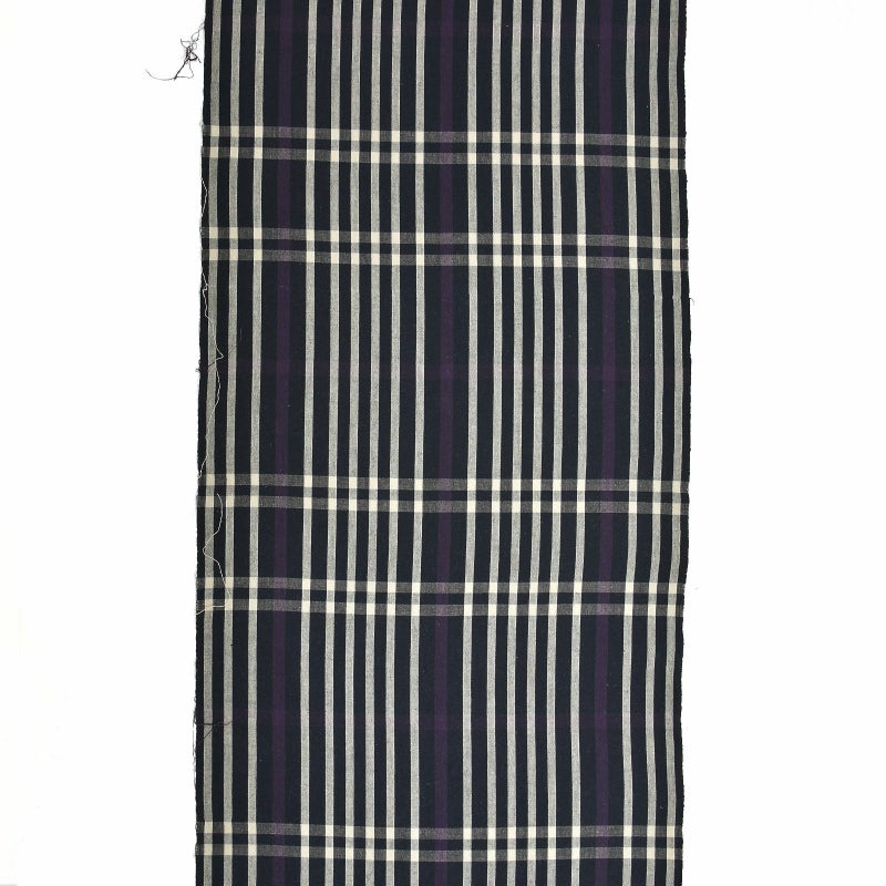 深い紺色地に濃紫、白の縞に、浅い白の横線を組み合わせた縦長の格子。夜を思わせる大人っぽい配色です。