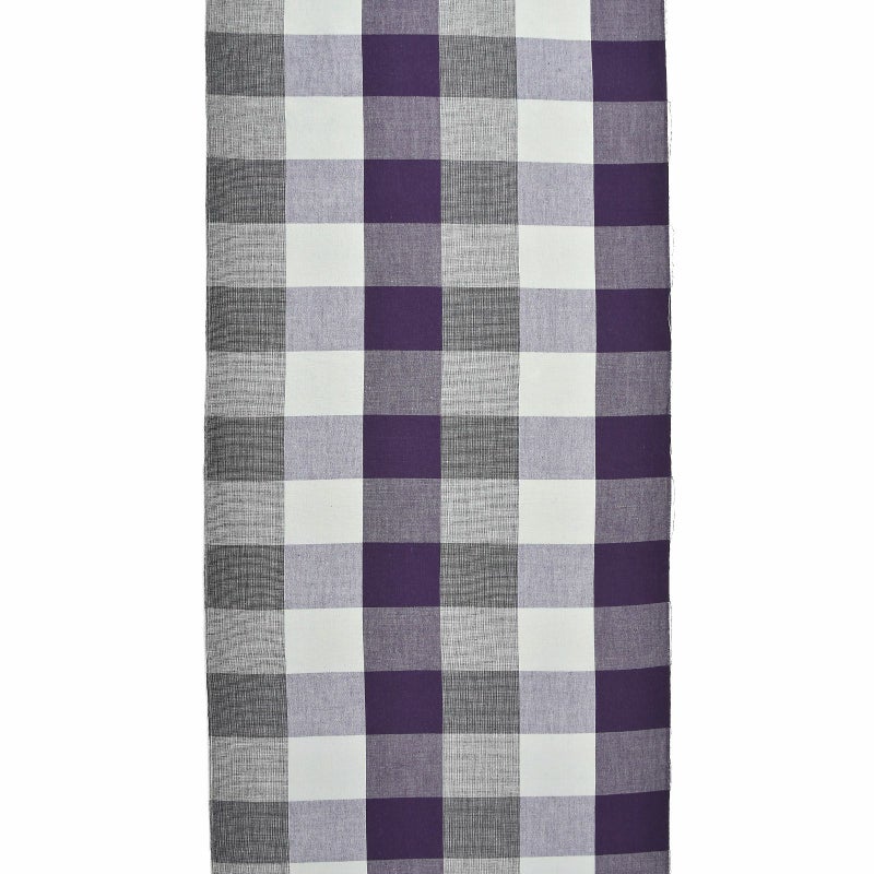 全体的に薄グレーの地に深い青紫色、細かな筋の入った灰色などを重ねた約6~7cm角ほどのブロックチェック。グレイッシュな都会的な雰囲気の格子です。