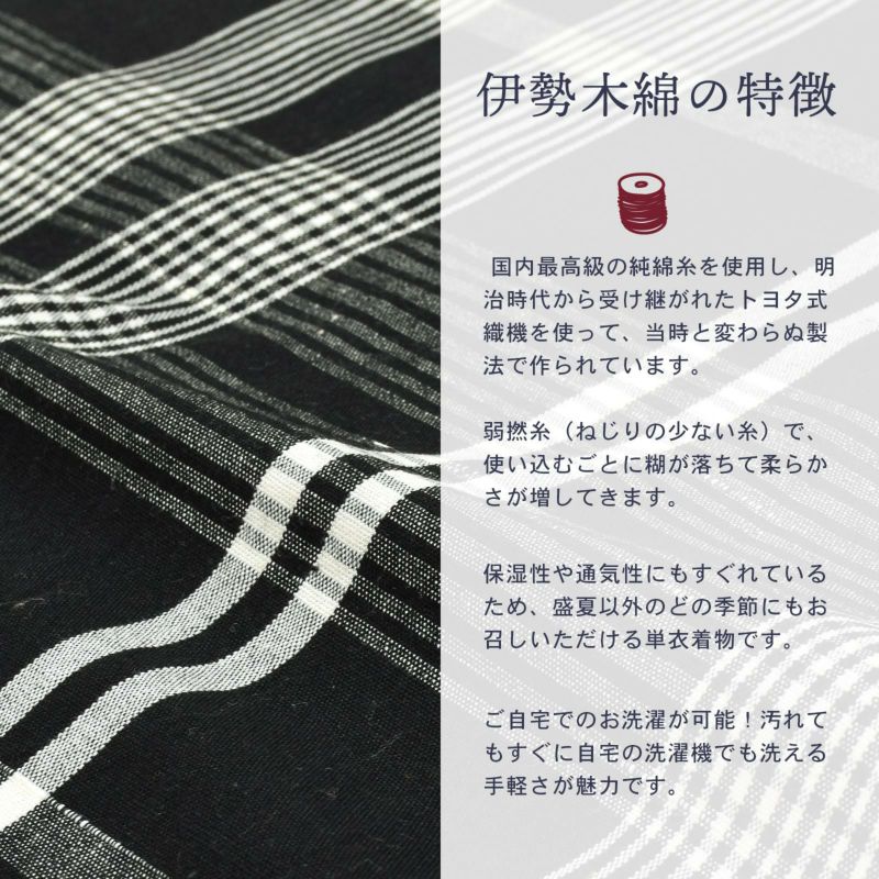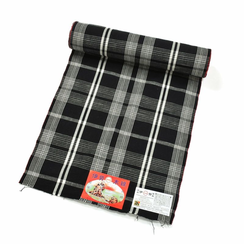 5. 伊勢木綿 洗える着物 反物 レディース「重ね格子 黒」未仕立て 木綿きもの 日本製 三重県 伝統工芸品 単衣 綿 カジュアル 小紋 レディース【メール便不可】
