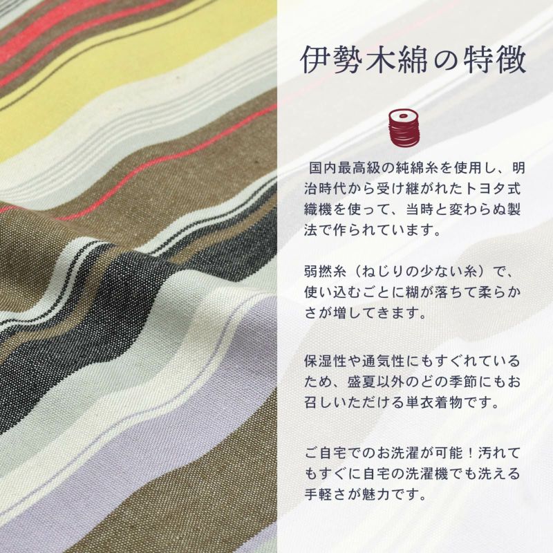 5. 伊勢木綿 洗える着物 反物 レディース「やたら縞 ノベルティストライプ」未仕立て 木綿きもの 日本製 三重県 伝統工芸品 単衣 綿 カジュアル 小紋 レディース【メール便不可】