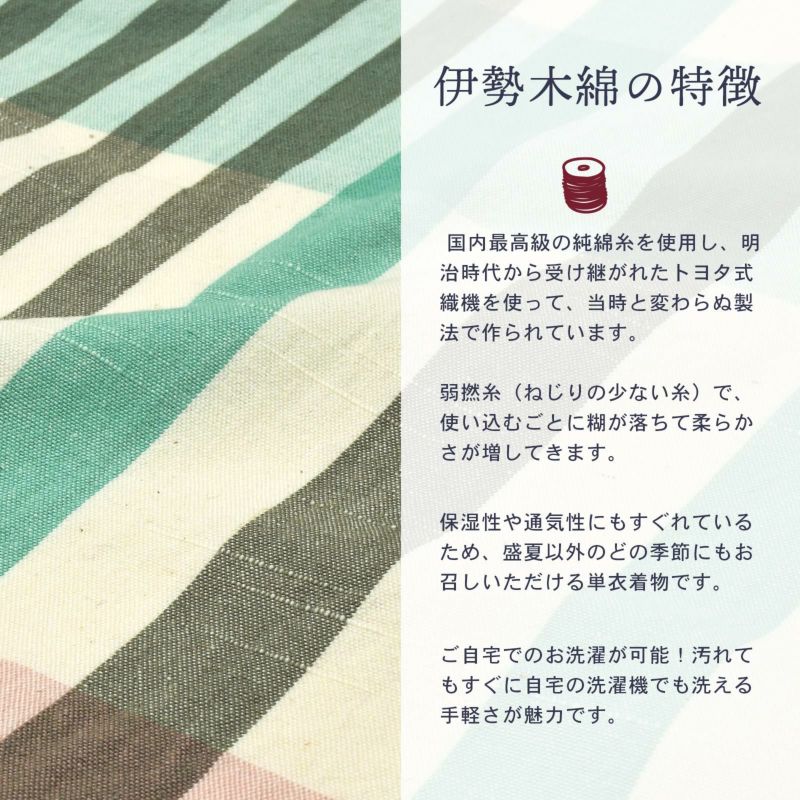 5. 伊勢木綿 洗える着物 反物 レディース「格子 白地 グレー×ミント×薄紅」未仕立て 木綿きもの 日本製 三重県 伝統工芸品 単衣 綿 カジュアル 小紋 レディース【メール便不可】